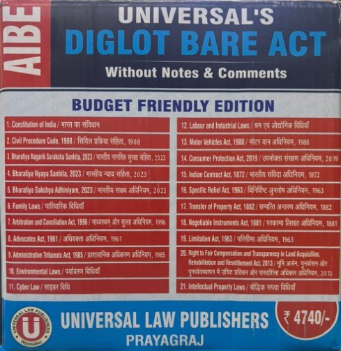 AIBE (All Indian Bar Examination) Diglot Bare Set by Universal Law Publishers (Set of 21 Bare Acts) – Edition 2025